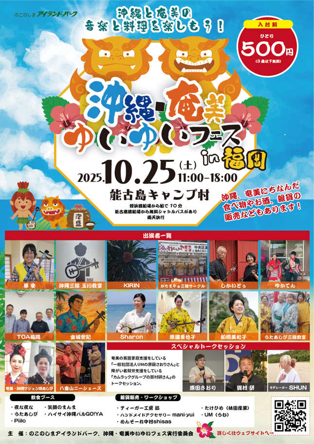2025年10月25日に福岡市西区能古島で開催される、「沖縄・奄美ゆいゆいフェスin福岡」にカムラックグループ代表の賀村研が登壇いたします。