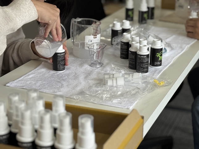 カムラックグループの新商品、ヘルメットにシュッとひと吹き快適空間『ヘルメッシュ』。