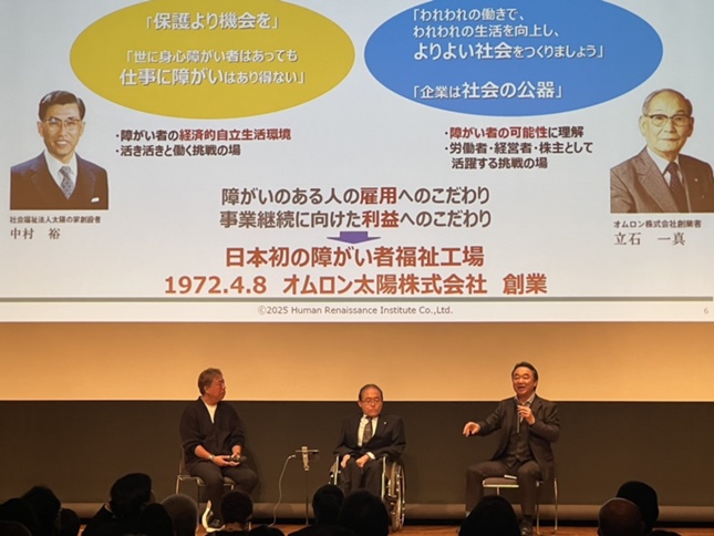 太陽の家山下理事長、ヒューマンルネッサンス研究所立石社長(前オムロン太陽社長)と私でのパネルディスカッション。