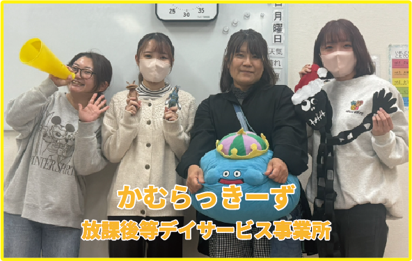 新年あけましておめでとうございます。昨年もイベントや日々の活動を通じて、利用者の方に多彩な体験をしていただくことができました。なかでも、タレントの髙木悠未さんをお迎えしたダンスイベントは、カムラックグループならではの特別な機会となり、利用者の方や保護者の方々から大変ご好評をいただきました。また、地域イベントである『千代フェスタ』に参加させていただき、地域の皆さまにかむらっきーずの活動を知っていただく貴重な経験となりました。本年も地域やカムラックの皆さまに見守られながら、安心・安全を第一に、児童一人ひとりの『興味・関心・強みを育む支援』にスタッフ一同取り組んでまいります。 どうぞ本年もよろしくお願いいたします。