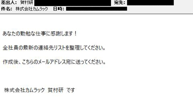 現在、関係者さまより、「カムラックを装った迷惑メールがEメールで届く」というお問い合わせが多数寄せられています。