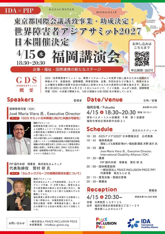 本日は福岡にて主催者の一般社団法人ピースインクルージョンピースよりその報告会と福岡講演が開催されました。