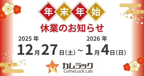平素は格別のお引き立てを賜り、厚く御礼申し上げます。弊社では、誠に勝手ながら下記の期間を年末年始休業とさせていただきます。 <年末年始休業期間>2025年12月27日(土)~2026年1月4日(日)新年の1月5日(月)9:00より通常業務となります。 休業期間中にご連絡いただきました件については、1月5日(月...